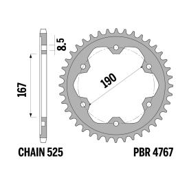 Corona PBR in Acciaio per Kawasaki ZX-10R (Ripresa) / Z900 - Versys 1000 (Allungo) - 41 Denti - Passo 525 ...