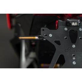 Gli indicatori di direzione FRE933NER sono omologati E8, garantendo la piena conformità alle normative europee. La loro tecnologia a LED non solo migliora notevolmente la visibilità della moto, ma assicura anche un'illuminazione sequenziale dinamica e di forte impatto visivo. Ideali per essere abbinate ai portatarga Lightech, si integrano perfettamente nel look racing della tua moto.