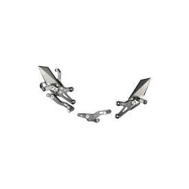 Questa specifica versione è dotata di poggiapiedi fissi (non snodati), la scelta prediletta dai piloti professionisti e dagli amanti dei track-days. Il poggiapiede fisso, infatti, garantisce una rigidità strutturale assoluta in fase di spinta e fungendo da "slider" aggiuntivo in caso di scivolata, proteggendo parti più delicate della moto. Il cuore del sistema è l'esclusivo brevetto Track System LighTech, che permette di regolare la posizione del poggiapiede in modo rapido e millimetrico senza dover smontare l'intera struttura della pedana.