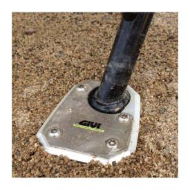 Realizzata con materiali di alta qualità, questa estensione è un supporto specifico in alluminio e acciaio inox. La sua funzione principale è quella di allargare la superficie di appoggio del cavalletto laterale originale, riducendo il rischio di ribaltamento della moto quando parcheggi su superfici morbide come sabbia, terra, erba o persino asfalto rovente.
